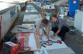 Wir spritzen Ihr Firmenlogo oder Werbung auch auf den Boden. Die etwas andere aber auffallende Art von Werbung.